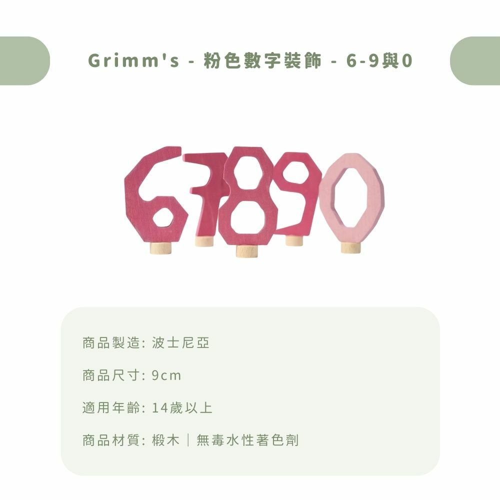 Grimm's - 粉色數字裝飾 6-9與0