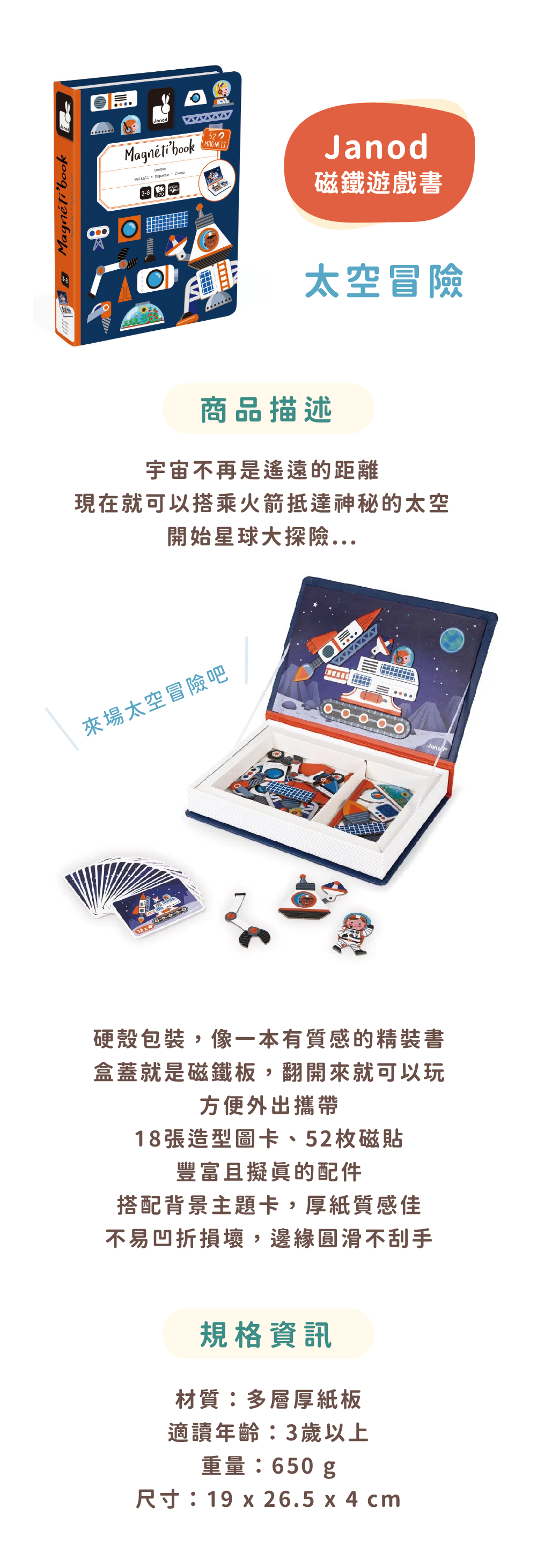 Janod - 磁鐵遊戲書 - 太空探險