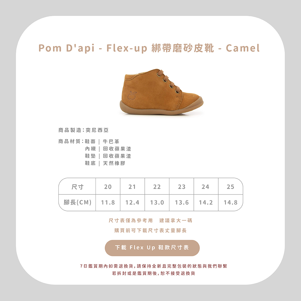 法國足醫專業指定,童鞋界中的愛馬仕精品!專精童鞋領域半個世紀以上的 Pom d’Api,致力成為專業學步鞋的領航者,與 UFSP 足科醫師聯盟合作,推出獨家「第一步鞋」系列,保證每雙鞋都具備科學要求兒童腳步發育的技術標準,支持孩童們邁出人生的第一步。從草圖到完成經過200多個工序,才呈現出細膩完美的質感,同樣重視環保的 Pom d’Api,還開發首創的再生皮革,更加柔軟透氣,也更加友善環境。  以法國著名童謠命名的 Pom d’Api,將法國人的優雅巧思融入精湛鞋藝,打造兼具實用與美感的可愛童鞋。自第一家精品店於1980年在巴黎市中心開業,便以卓越設計在這個時尚之都掀起流行風潮。  針對不同腳型研發的多款鞋型,提供百變的創意造型和經久不變的舒適耐用,在法國百貨歷久不衰的傳奇,穿過的人都知道!