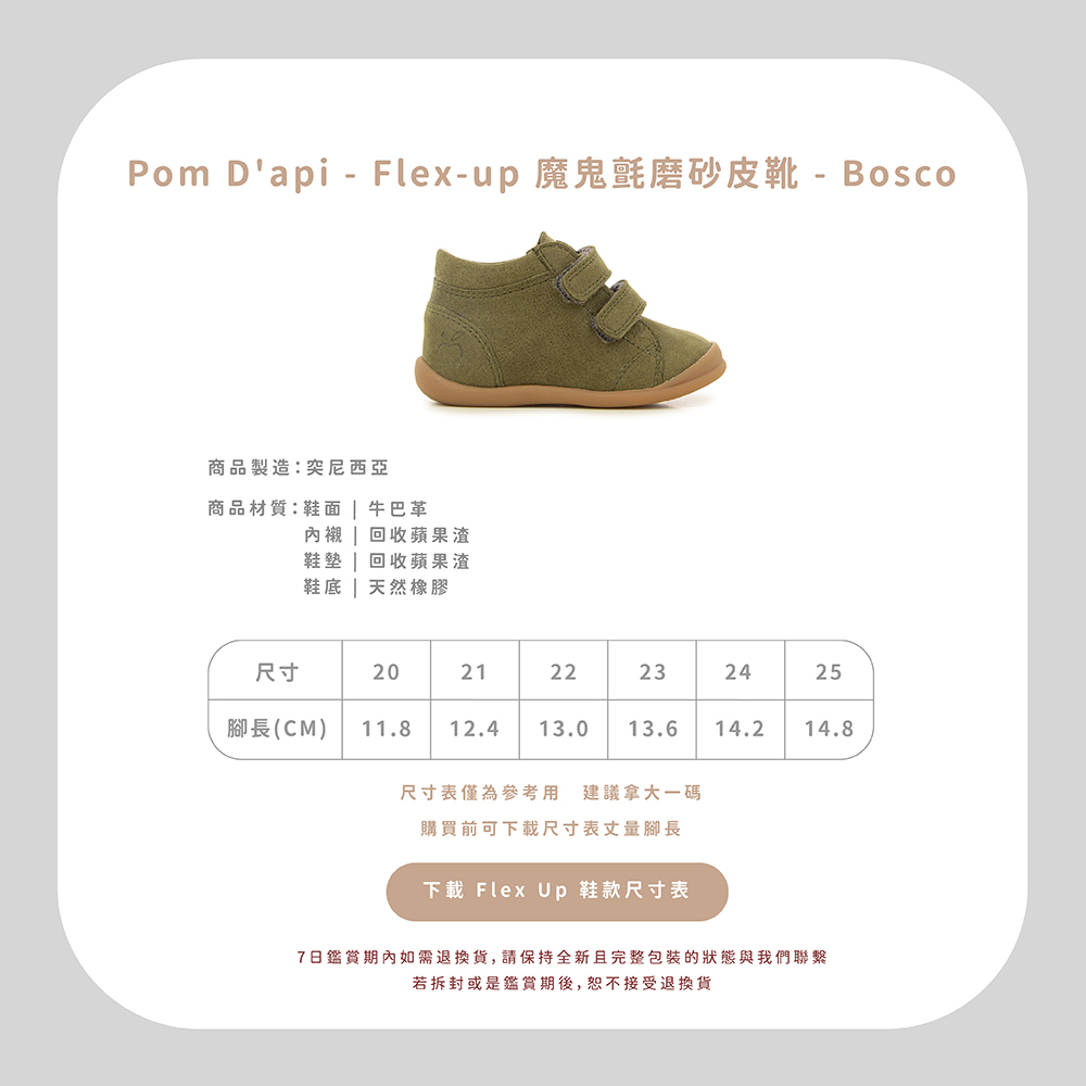 法國足醫專業指定,童鞋界中的愛馬仕精品!專精童鞋領域半個世紀以上的 Pom d’Api,致力成為專業學步鞋的領航者,與 UFSP 足科醫師聯盟合作,推出獨家「第一步鞋」系列,保證每雙鞋都具備科學要求兒童腳步發育的技術標準,支持孩童們邁出人生的第一步。從草圖到完成經過200多個工序,才呈現出細膩完美的質感,同樣重視環保的 Pom d’Api,還開發首創的再生皮革,更加柔軟透氣,也更加友善環境。  以法國著名童謠命名的 Pom d’Api,將法國人的優雅巧思融入精湛鞋藝,打造兼具實用與美感的可愛童鞋。自第一家精品店於1980年在巴黎市中心開業,便以卓越設計在這個時尚之都掀起流行風潮。  針對不同腳型研發的多款鞋型,提供百變的創意造型和經久不變的舒適耐用,在法國百貨歷久不衰的傳奇,穿過的人都知道!