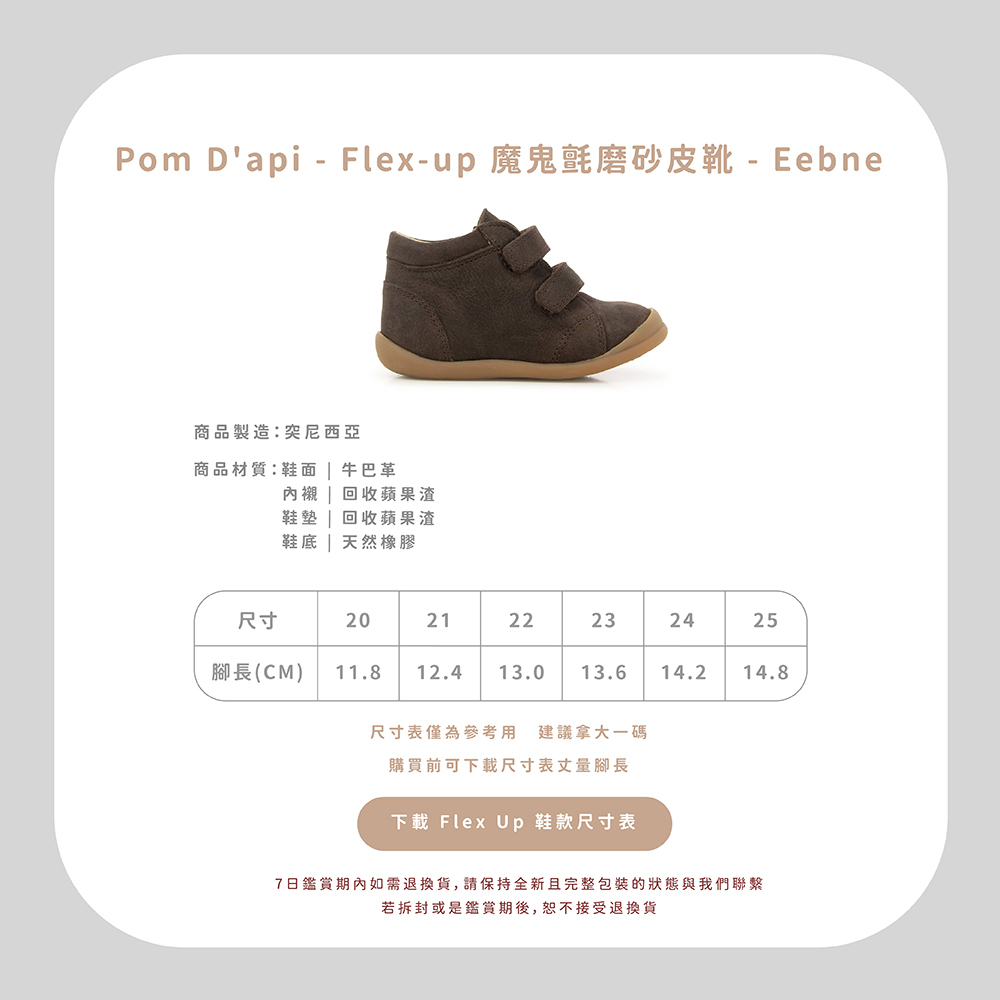 法國足醫專業指定,童鞋界中的愛馬仕精品!專精童鞋領域半個世紀以上的 Pom d’Api,致力成為專業學步鞋的領航者,與 UFSP 足科醫師聯盟合作,推出獨家「第一步鞋」系列,保證每雙鞋都具備科學要求兒童腳步發育的技術標準,支持孩童們邁出人生的第一步。從草圖到完成經過200多個工序,才呈現出細膩完美的質感,同樣重視環保的 Pom d’Api,還開發首創的再生皮革,更加柔軟透氣,也更加友善環境。  以法國著名童謠命名的 Pom d’Api,將法國人的優雅巧思融入精湛鞋藝,打造兼具實用與美感的可愛童鞋。自第一家精品店於1980年在巴黎市中心開業,便以卓越設計在這個時尚之都掀起流行風潮。  針對不同腳型研發的多款鞋型,提供百變的創意造型和經久不變的舒適耐用,在法國百貨歷久不衰的傳奇,穿過的人都知道!