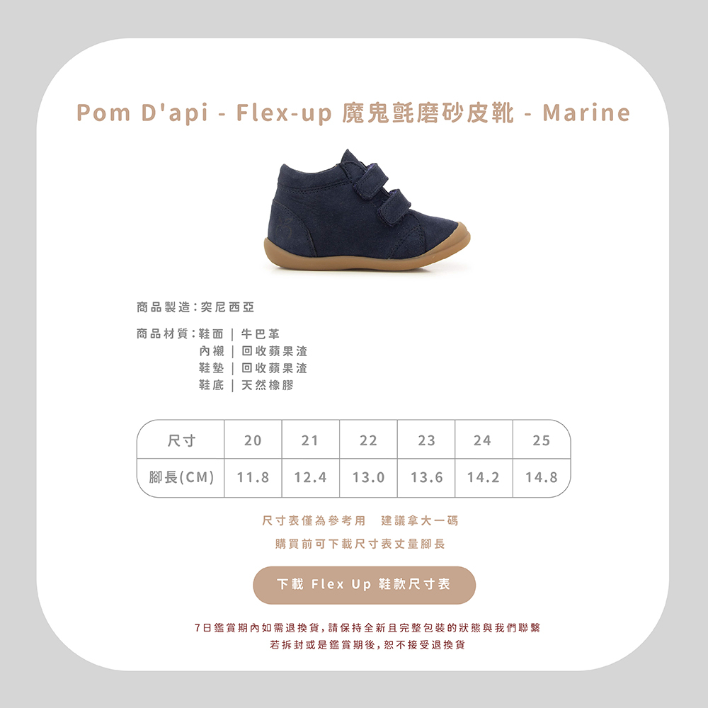 法國足醫專業指定,童鞋界中的愛馬仕精品!專精童鞋領域半個世紀以上的 Pom d’Api,致力成為專業學步鞋的領航者,與 UFSP 足科醫師聯盟合作,推出獨家「第一步鞋」系列,保證每雙鞋都具備科學要求兒童腳步發育的技術標準,支持孩童們邁出人生的第一步。從草圖到完成經過200多個工序,才呈現出細膩完美的質感,同樣重視環保的 Pom d’Api,還開發首創的再生皮革,更加柔軟透氣,也更加友善環境。  以法國著名童謠命名的 Pom d’Api,將法國人的優雅巧思融入精湛鞋藝,打造兼具實用與美感的可愛童鞋。自第一家精品店於1980年在巴黎市中心開業,便以卓越設計在這個時尚之都掀起流行風潮。  針對不同腳型研發的多款鞋型,提供百變的創意造型和經久不變的舒適耐用,在法國百貨歷久不衰的傳奇,穿過的人都知道!