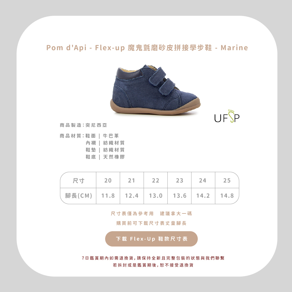 法國足醫專業指定,童鞋界中的愛馬仕精品!專精童鞋領域半個世紀以上的 Pom d’Api,致力成為專業學步鞋的領航者,與 UFSP 足科醫師聯盟合作,推出獨家「第一步鞋」系列,保證每雙鞋都具備科學要求兒童腳步發育的技術標準,支持孩童們邁出人生的第一步。從草圖到完成經過200多個工序,才呈現出細膩完美的質感,同樣重視環保的 Pom d’Api,還開發首創的再生皮革,更加柔軟透氣,也更加友善環境。  以法國著名童謠命名的 Pom d’Api,將法國人的優雅巧思融入精湛鞋藝,打造兼具實用與美感的可愛童鞋。自第一家精品店於1980年在巴黎市中心開業,便以卓越設計在這個時尚之都掀起流行風潮。  針對不同腳型研發的多款鞋型,提供百變的創意造型和經久不變的舒適耐用,在法國百貨歷久不衰的傳奇,穿過的人都知道!