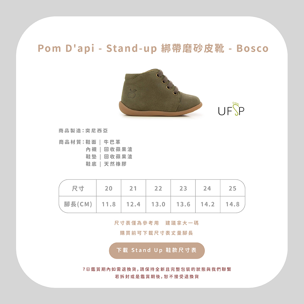 法國足醫專業指定,童鞋界中的愛馬仕精品!專精童鞋領域半個世紀以上的 Pom d’Api,致力成為專業學步鞋的領航者,與 UFSP 足科醫師聯盟合作,推出獨家「第一步鞋」系列,保證每雙鞋都具備科學要求兒童腳步發育的技術標準,支持孩童們邁出人生的第一步。從草圖到完成經過200多個工序,才呈現出細膩完美的質感,同樣重視環保的 Pom d’Api,還開發首創的再生皮革,更加柔軟透氣,也更加友善環境。  以法國著名童謠命名的 Pom d’Api,將法國人的優雅巧思融入精湛鞋藝,打造兼具實用與美感的可愛童鞋。自第一家精品店於1980年在巴黎市中心開業,便以卓越設計在這個時尚之都掀起流行風潮。  針對不同腳型研發的多款鞋型,提供百變的創意造型和經久不變的舒適耐用,在法國百貨歷久不衰的傳奇,穿過的人都知道!