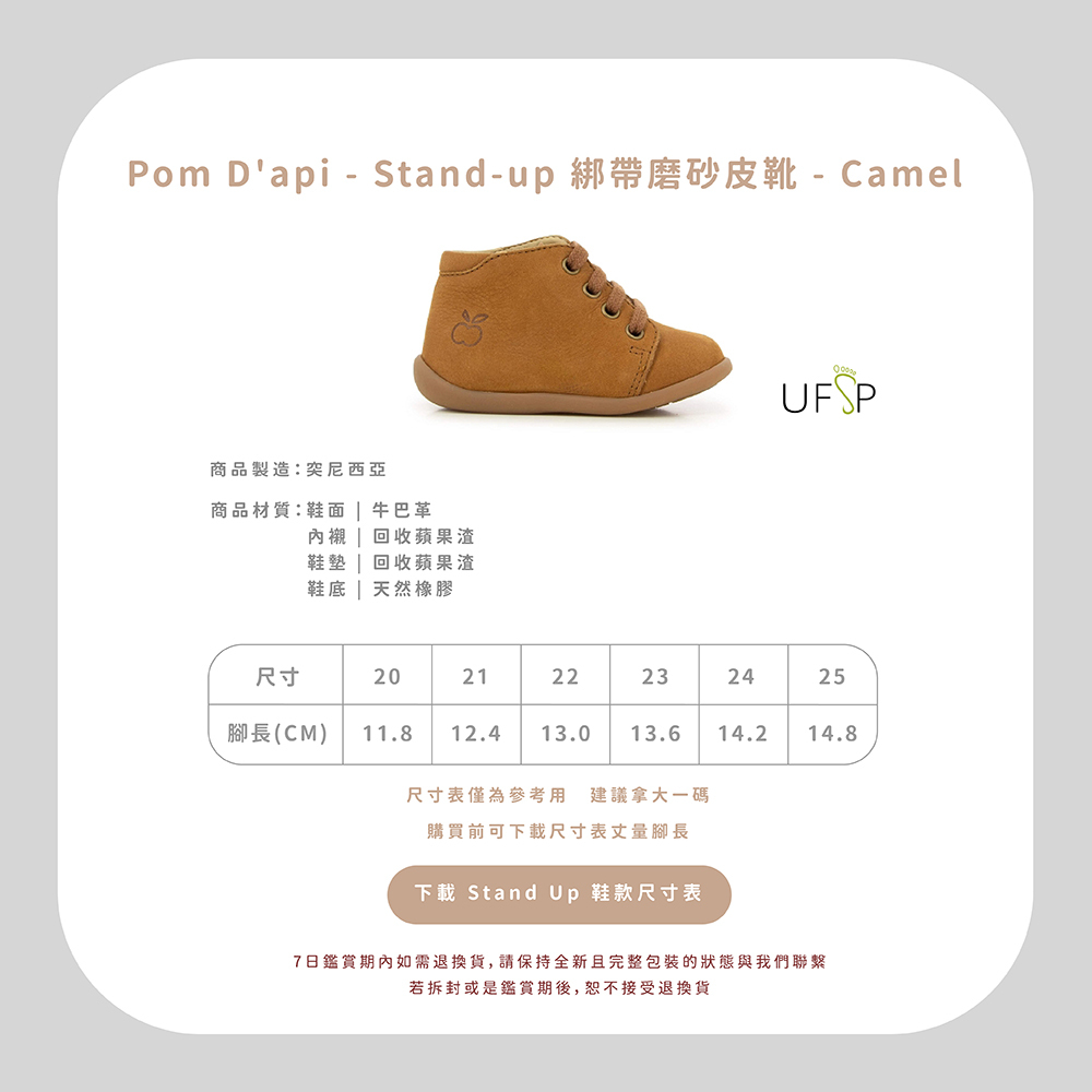 法國足醫專業指定,童鞋界中的愛馬仕精品!專精童鞋領域半個世紀以上的 Pom d’Api,致力成為專業學步鞋的領航者,與 UFSP 足科醫師聯盟合作,推出獨家「第一步鞋」系列,保證每雙鞋都具備科學要求兒童腳步發育的技術標準,支持孩童們邁出人生的第一步。從草圖到完成經過200多個工序,才呈現出細膩完美的質感,同樣重視環保的 Pom d’Api,還開發首創的再生皮革,更加柔軟透氣,也更加友善環境。  以法國著名童謠命名的 Pom d’Api,將法國人的優雅巧思融入精湛鞋藝,打造兼具實用與美感的可愛童鞋。自第一家精品店於1980年在巴黎市中心開業,便以卓越設計在這個時尚之都掀起流行風潮。  針對不同腳型研發的多款鞋型,提供百變的創意造型和經久不變的舒適耐用,在法國百貨歷久不衰的傳奇,穿過的人都知道!