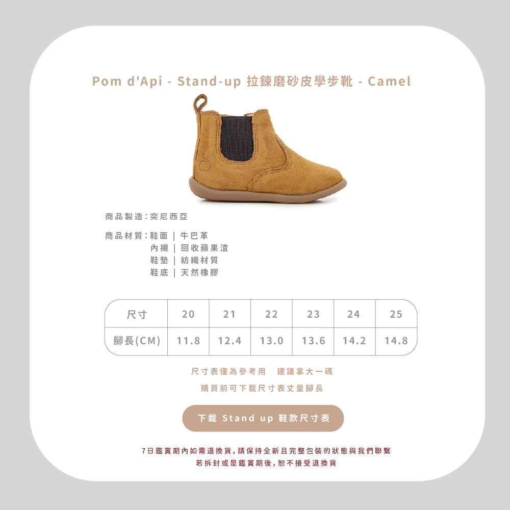 Pom d'Api - Stand-up 拉鍊磨砂皮學步靴 - Camel
