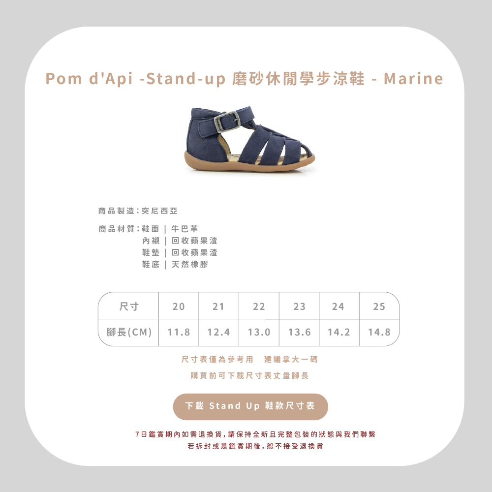 Pom d'Api - Stand-up 魔鬼氈磨砂學步涼鞋 - Marine