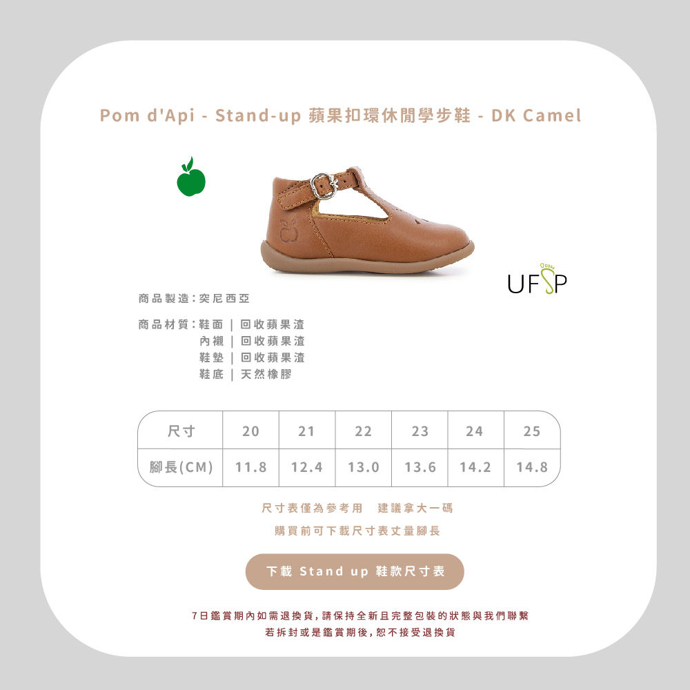 法國足醫專業指定,童鞋界中的愛馬仕精品!專精童鞋領域半個世紀以上的 Pom d’Api,致力成為專業學步鞋的領航者,與 UFSP 足科醫師聯盟合作,推出獨家「第一步鞋」系列,保證每雙鞋都具備科學要求兒童腳步發育的技術標準,支持孩童們邁出人生的第一步。從草圖到完成經過200多個工序,才呈現出細膩完美的質感,同樣重視環保的 Pom d’Api,還開發首創的再生皮革,更加柔軟透氣,也更加友善環境。  以法國著名童謠命名的 Pom d’Api,將法國人的優雅巧思融入精湛鞋藝,打造兼具實用與美感的可愛童鞋。自第一家精品店於1980年在巴黎市中心開業,便以卓越設計在這個時尚之都掀起流行風潮。  針對不同腳型研發的多款鞋型,提供百變的創意造型和經久不變的舒適耐用,在法國百貨歷久不衰的傳奇,穿過的人都知道!