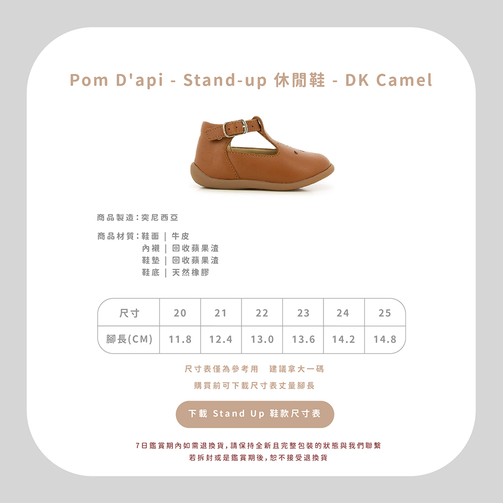法國足醫專業指定,童鞋界中的愛馬仕精品!專精童鞋領域半個世紀以上的 Pom d’Api,致力成為專業學步鞋的領航者,與 UFSP 足科醫師聯盟合作,推出獨家「第一步鞋」系列,保證每雙鞋都具備科學要求兒童腳步發育的技術標準,支持孩童們邁出人生的第一步。從草圖到完成經過200多個工序,才呈現出細膩完美的質感,同樣重視環保的 Pom d’Api,還開發首創的再生皮革,更加柔軟透氣,也更加友善環境。  以法國著名童謠命名的 Pom d’Api,將法國人的優雅巧思融入精湛鞋藝,打造兼具實用與美感的可愛童鞋。自第一家精品店於1980年在巴黎市中心開業,便以卓越設計在這個時尚之都掀起流行風潮。  針對不同腳型研發的多款鞋型,提供百變的創意造型和經久不變的舒適耐用,在法國百貨歷久不衰的傳奇,穿過的人都知道!