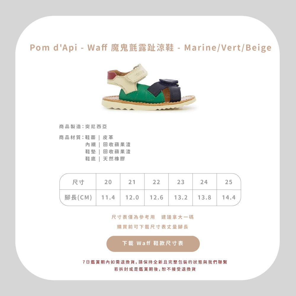 Pom d'Api - Waff 魔鬼氈露趾涼鞋 - Marine/Vert/Beige