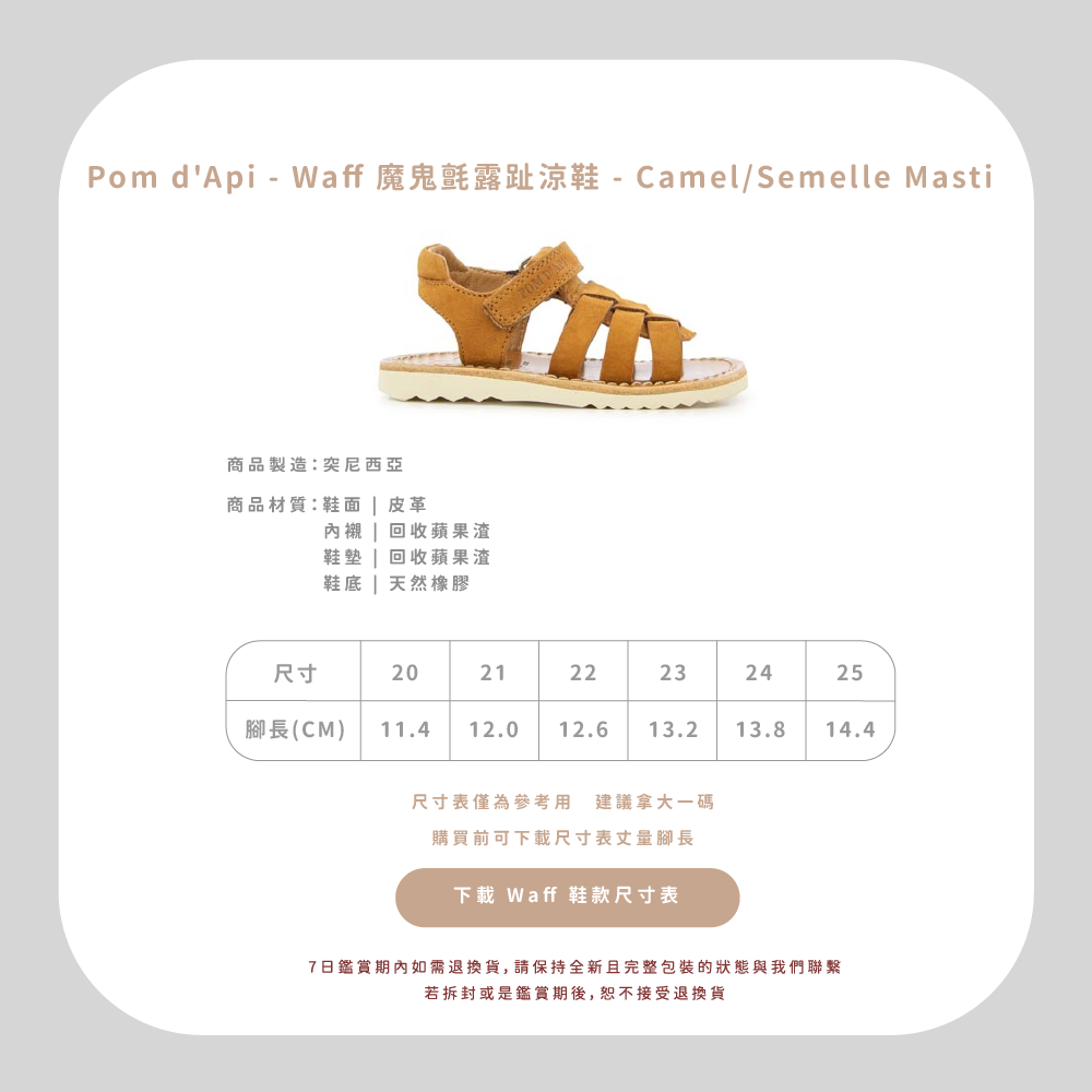 Pom d'Api - Waff 魔鬼氈露趾涼鞋 - Camel/Semelle Masti