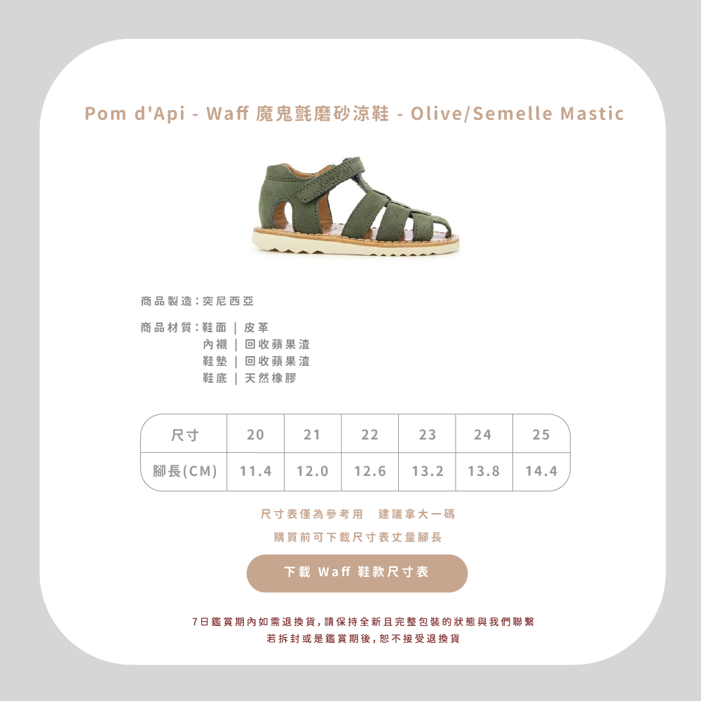 Pom d'Api - Waff 魔鬼氈磨砂涼鞋 - Olive/Semelle Mastic