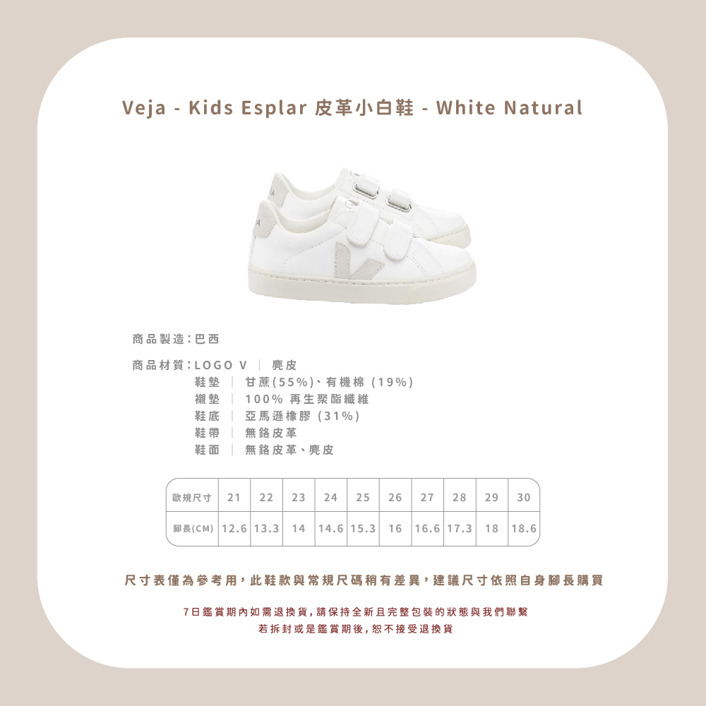 Veja - Kids Esplar 皮革小白鞋 - White Natural