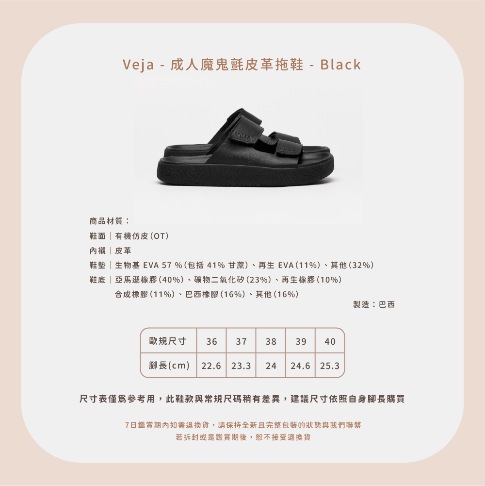 Veja - 成人魔鬼氈皮革拖鞋 - Black