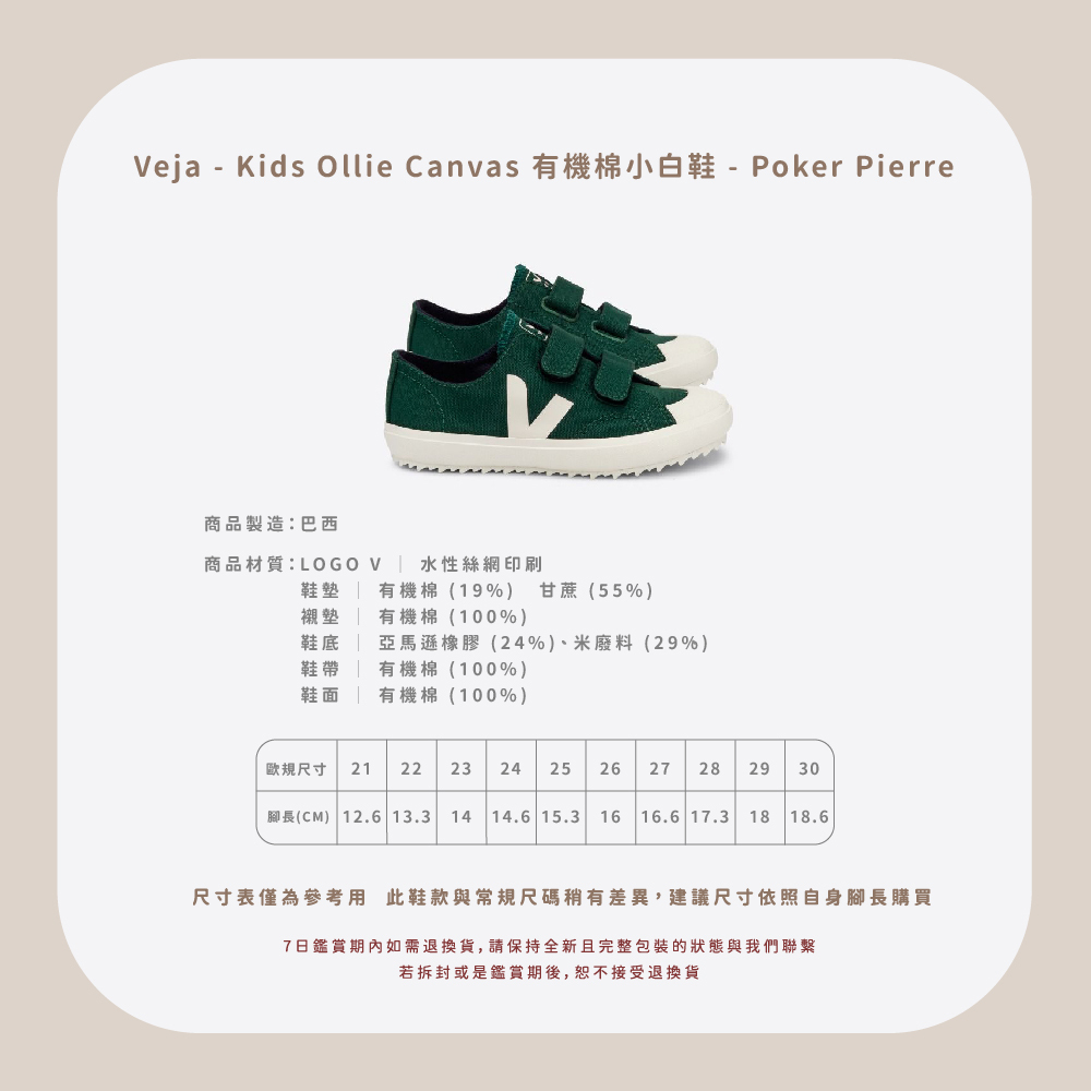 Veja - Kids Ollie Canvas 有機棉小白鞋 - Poker Pierre