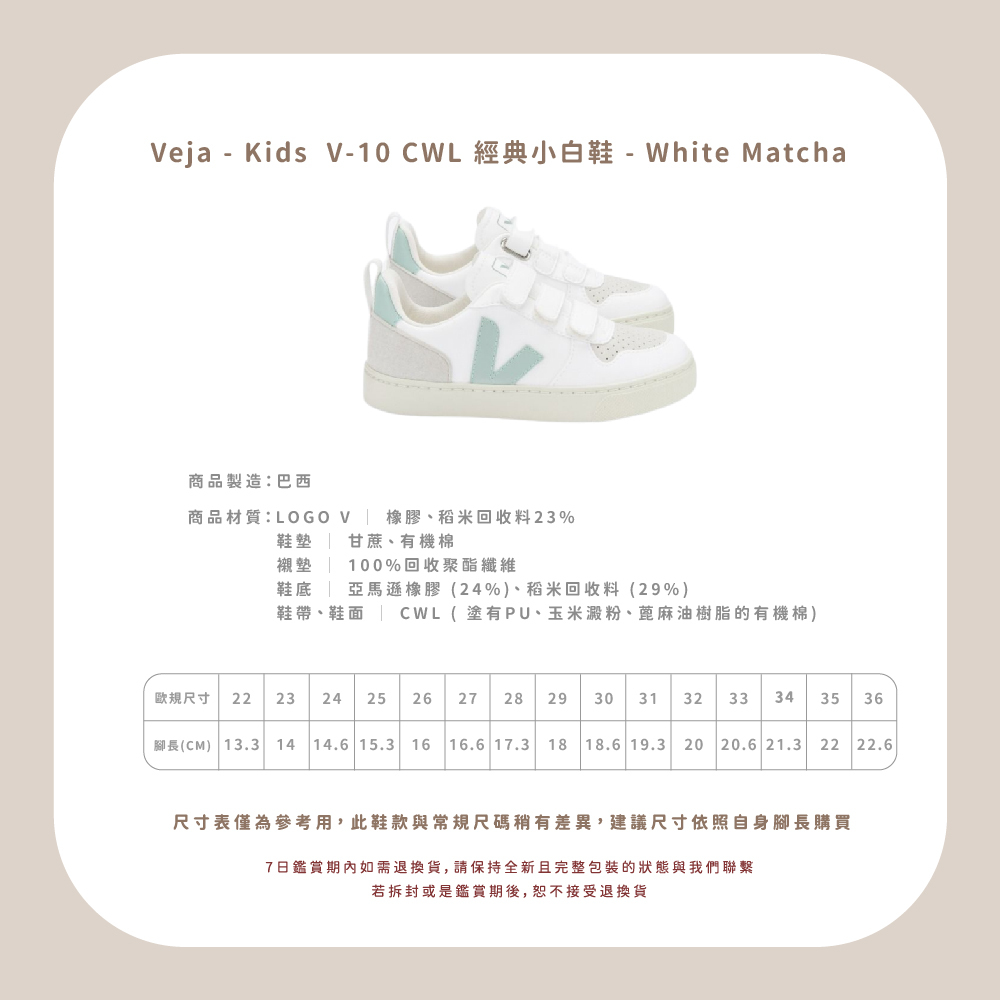 Veja - Kids V-10 CWL 經典小白鞋 - White Matcha