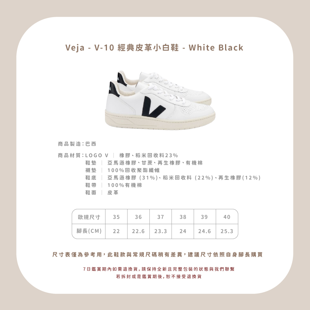 Veja - V-10 成人經典皮革小白鞋 - White Black