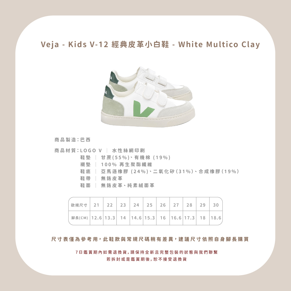Veja - Kids V-12 經典皮革小白鞋 - White Multico Clay