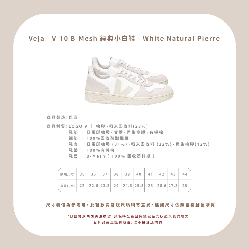 Veja - V-10 B-Mesh 成人經典小白鞋 - White Natural Pierre