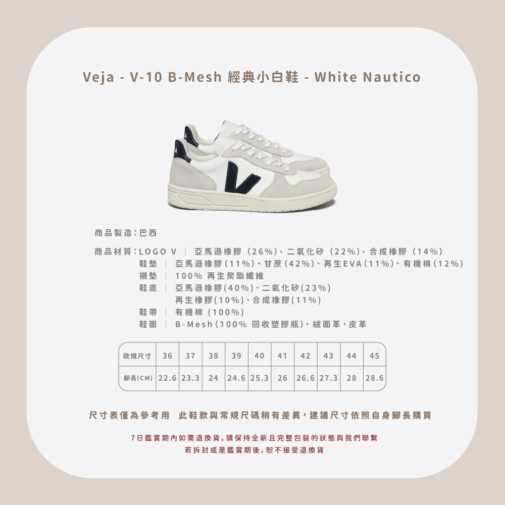 Veja - V-10 B-Mesh 成人經典小白鞋 - White Nautico