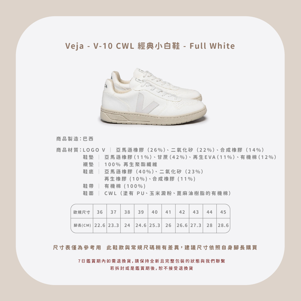 Veja - V-10 CWL 成人經典小白鞋 - Full White