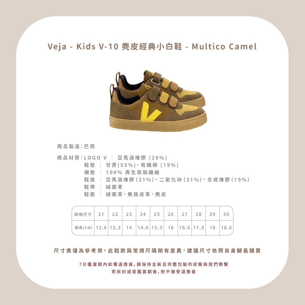 Veja - Kids V-10 麂皮經典小白鞋 - Multico Camel