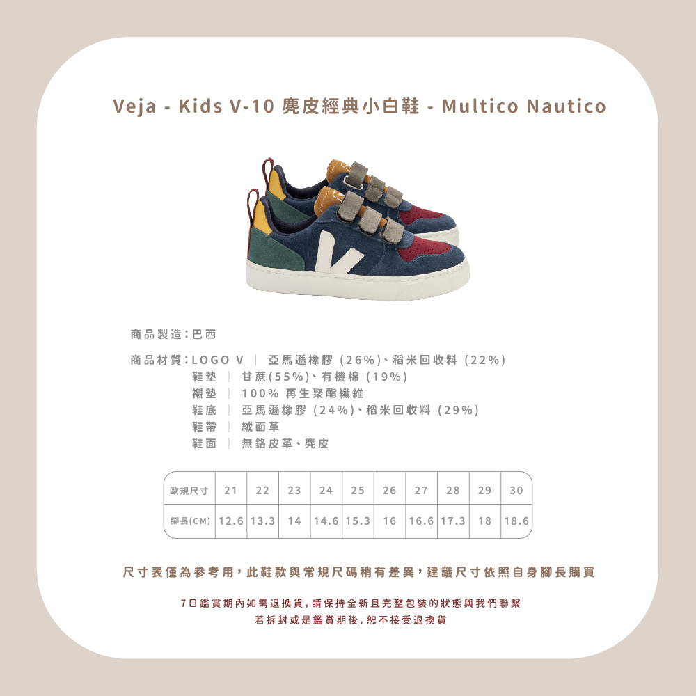Veja - Kids V-10 麂皮經典小白鞋 - Multico Nautico