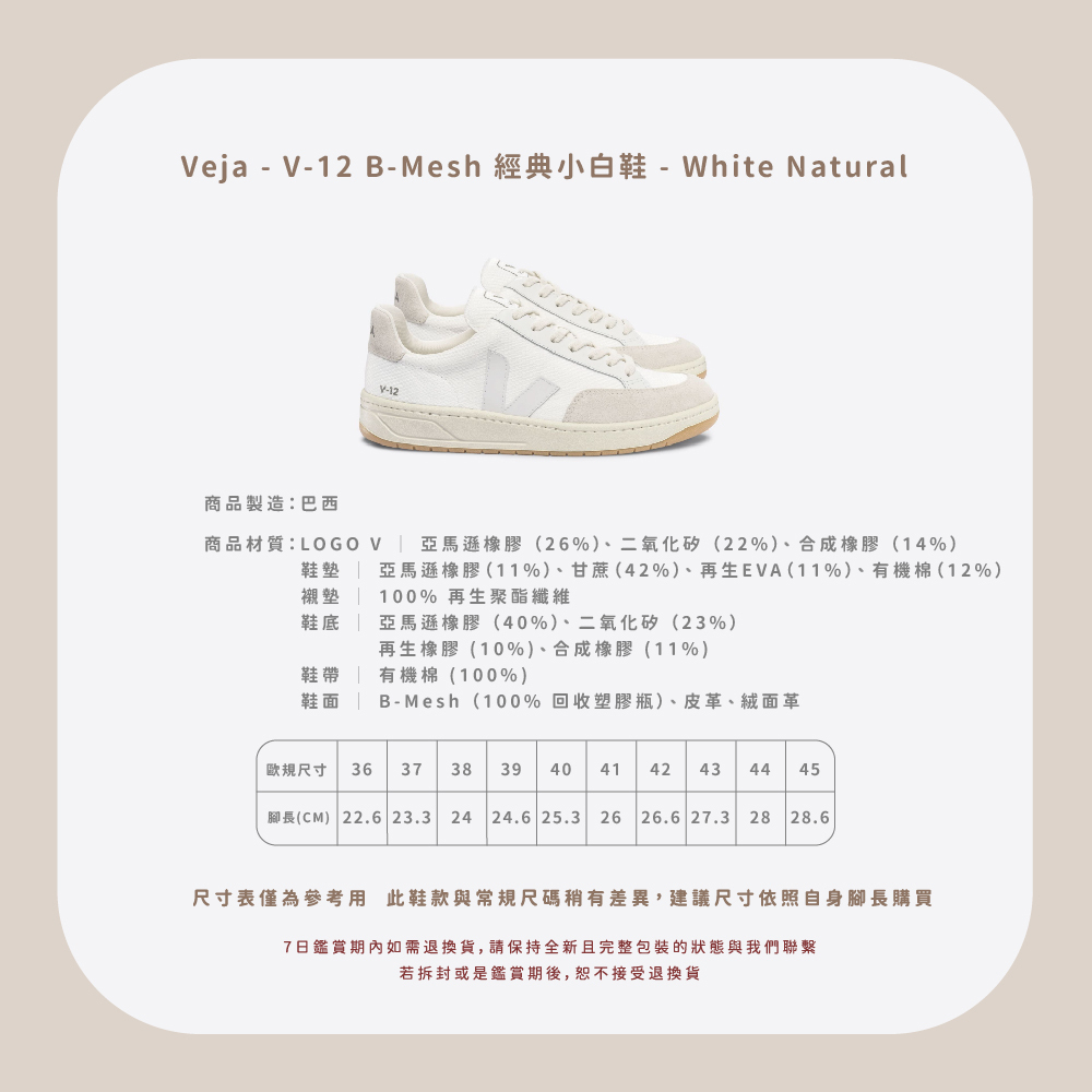 Veja - V-12 B-Mesh 成人經典小白鞋 - White Natural